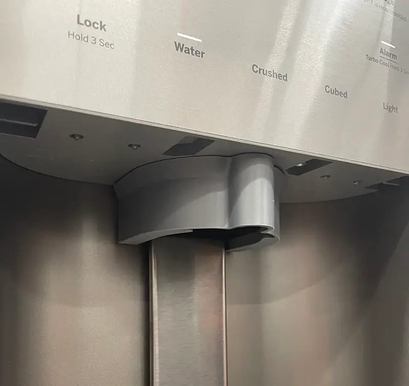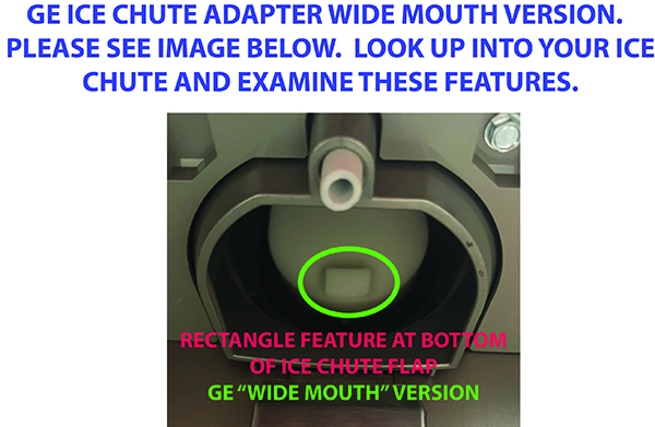The GE Wide Mouth version Ice Chute adapter is designed specifically for this ice dispenser. Please review images of ice dispenser details in the images of the listing